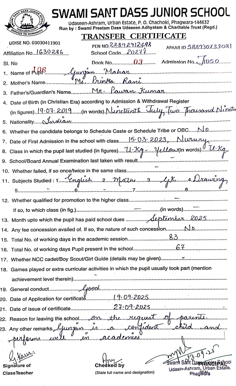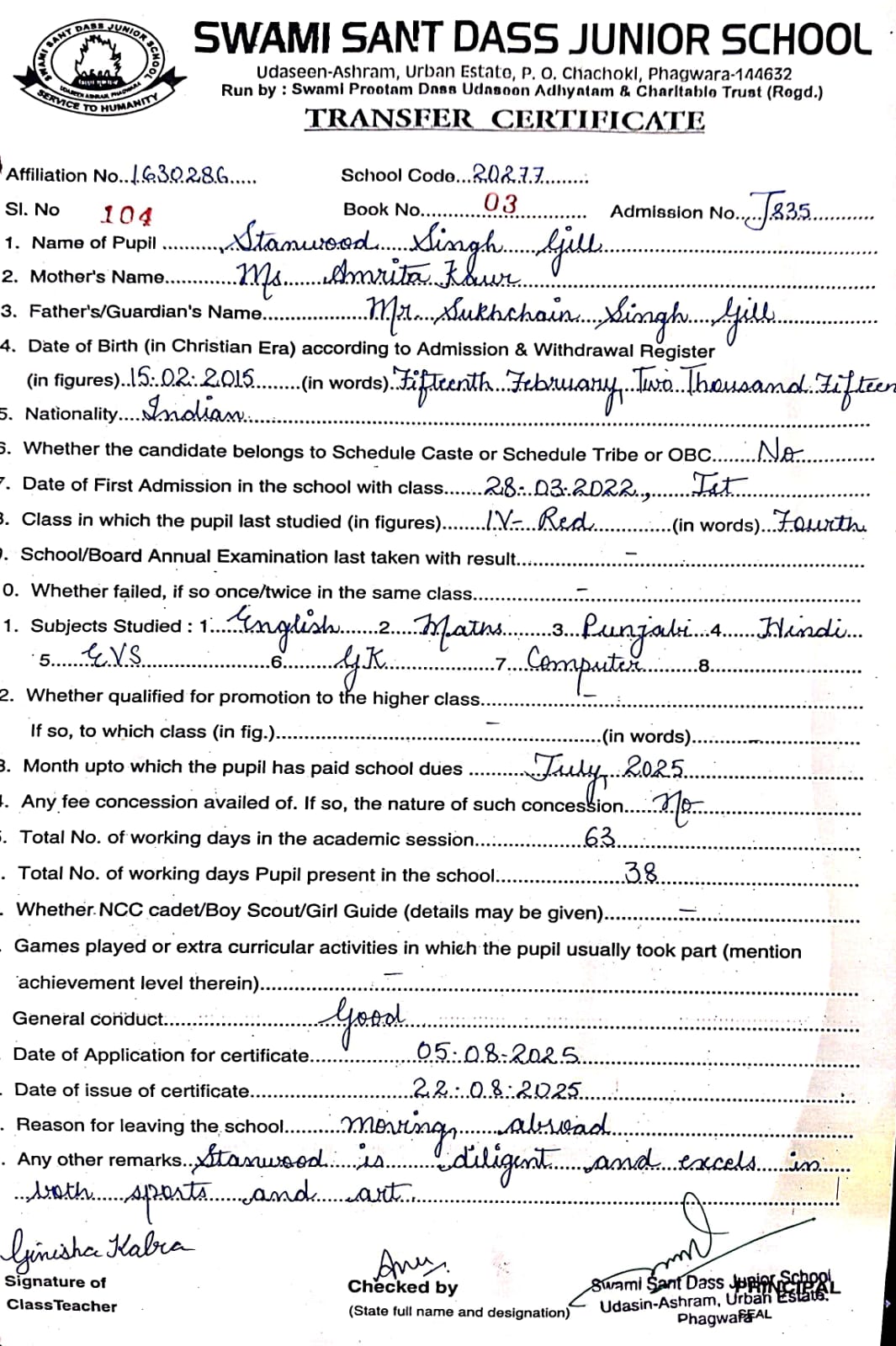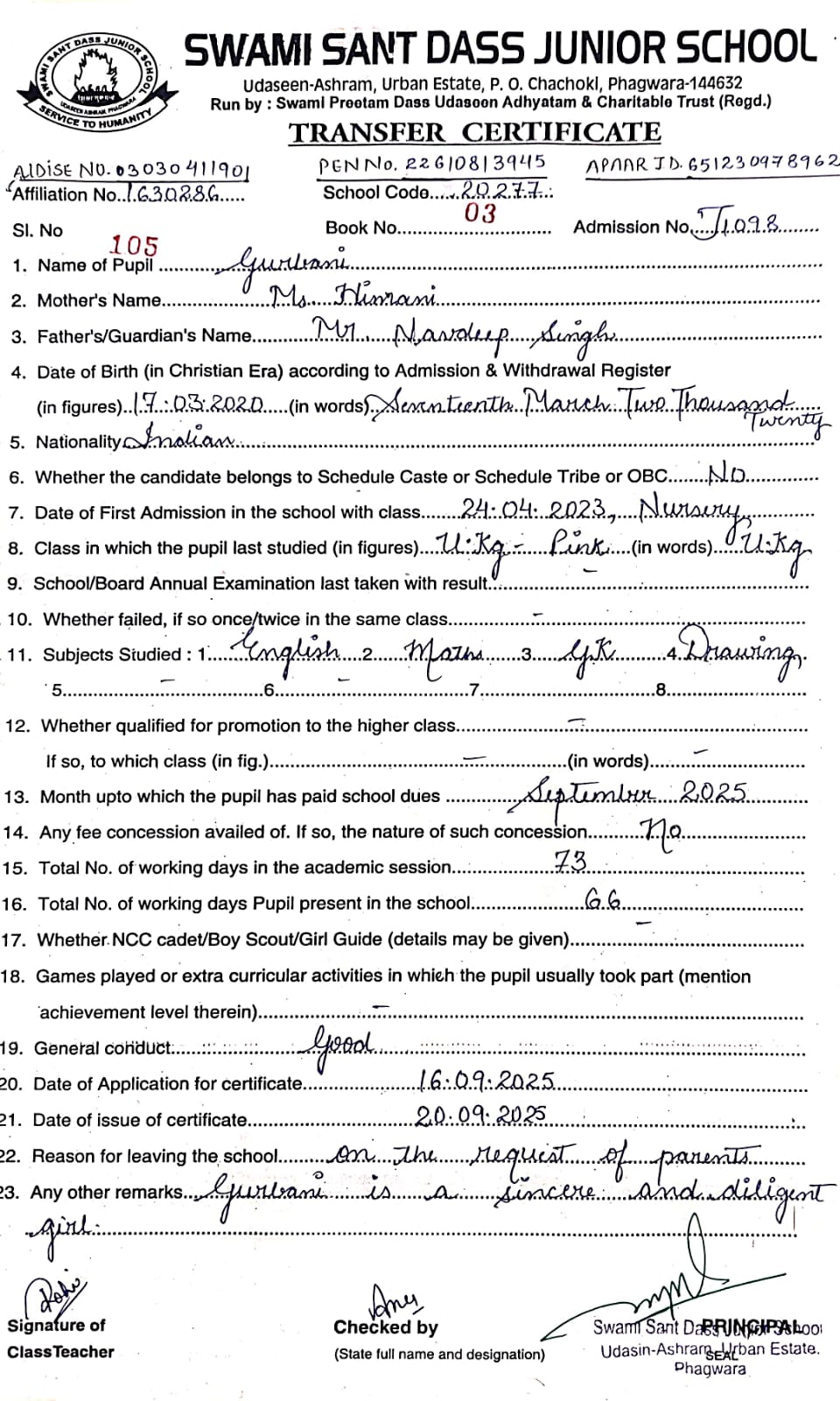 872 | Jasnoor Singh Bilkhu | Baljinder Kaur Bilkhu | L.K.G | Pink | Download File |