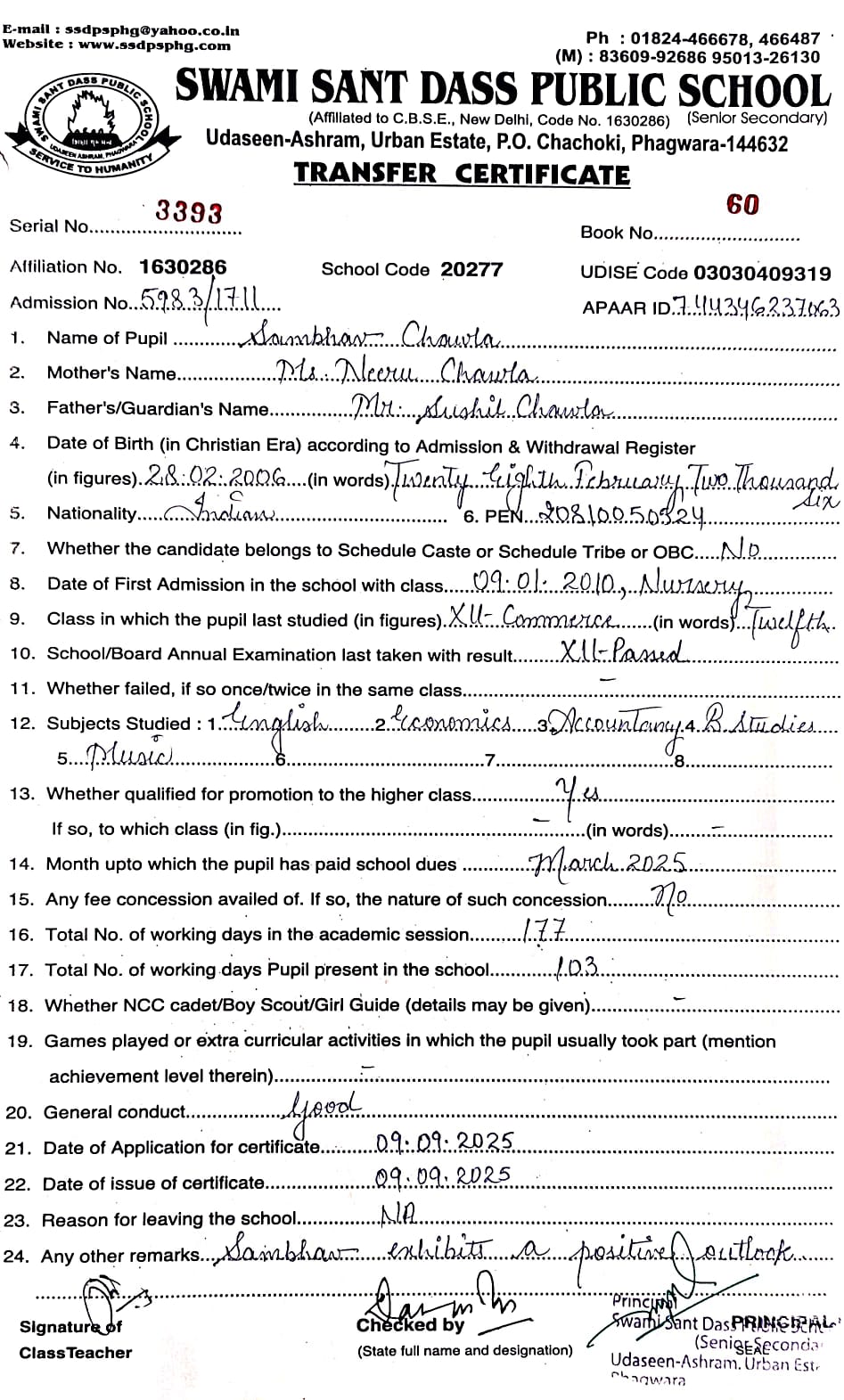 24 | Samit Sharma | Chander Mohan | +2 Comm | A | Download File |